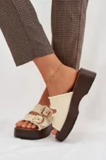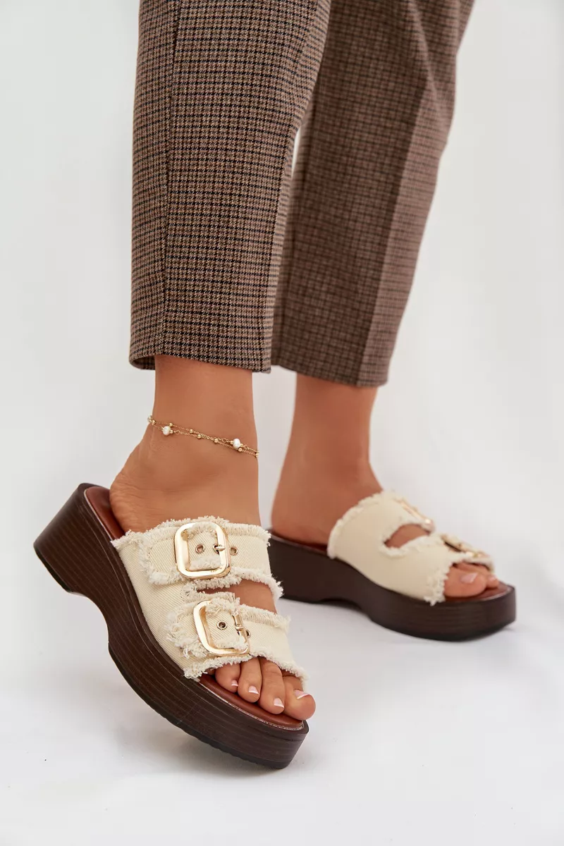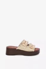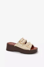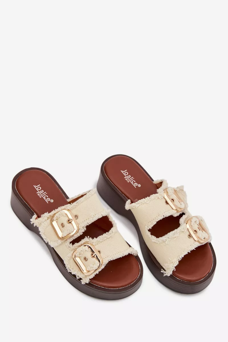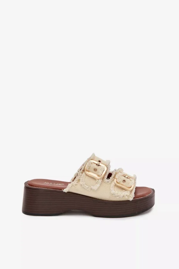 Tekstilinės medžiagos moteriškos basutės yra stilingas ir patogus pasirinkimas kasdieniam nešiojimui. Modelis turi dvi juosteles su auksinėmis sagtimis, kurios pabrėžia jo madingą išvaizdą. Pagamintos ant platformos. Minkšta vidpadžiai padidina komfortą net ir ilgai nešiojant. Basutės puikiai tinka vasaros aprangai, derindamos funkcionalumą su stilinga išvaizda. Renkantis dydį, prašome remtis dydžių lentele.