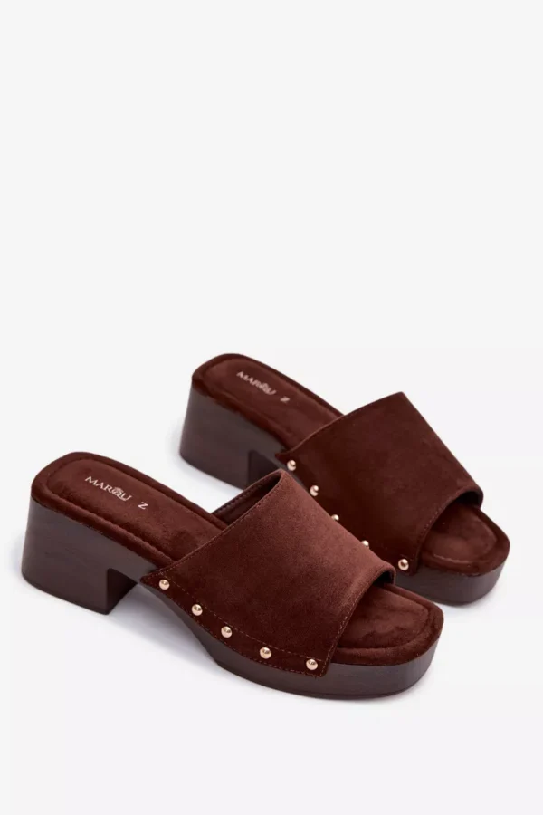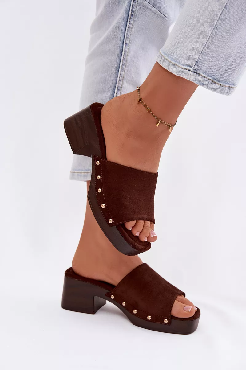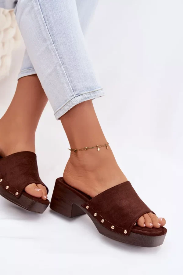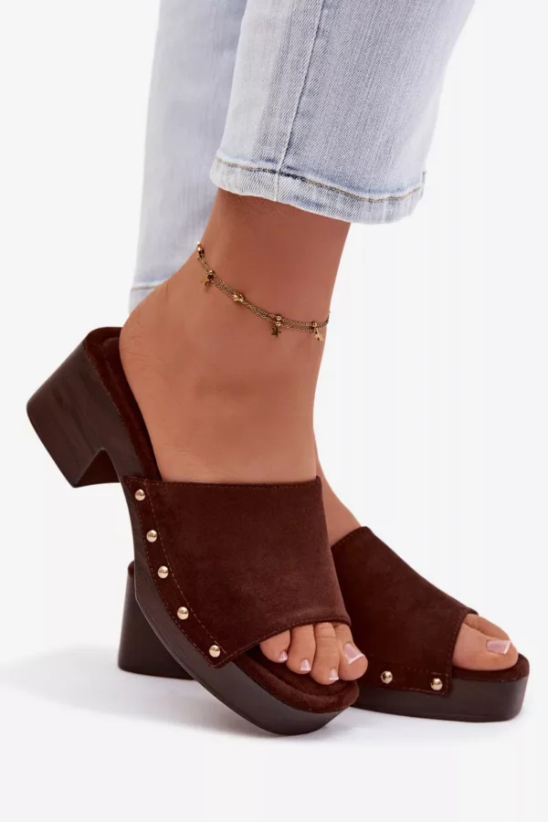 Moteriški platforminiai šlepetės su auksiniais sagtimis Šokoladinės Davessa