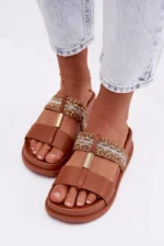 Svarstote apie naujus batus, kurie praturtintų jūsų garderobą? “Camel Tahlia” papuoštos damų platformos su dirželiais yra puiki ir madinga avalynė, kuri neabejotinai patrauks dėmesį karštomis vasaros dienomis. Sukurtos su ypatinga spindinčios pintos detalės dirželiu, šios platformos suteikia modernų, rafinuotą įvaizdį. Jas dekoruojantys auksiniai akcentai prideda elegancijos ir išskirtinumo, pabrėždami šių batų unikalumą. Patogi platforma užtikrina stabilumą ir komfortą, todėl tai ideali avalynė bet kokiam vasaros stiliui.