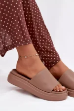 Patogios odinės šlepetės su platforma