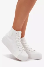 Moteriški platforminiai kedai “Big Star RR274743” balti – tai puikus pasirinkimas ieškantiems patogumo ir modernumo. Pagaminti iš aukštos kokybės tekstilės, jie suteikia stabilumą ir komfortą visą dieną. Suapvalinti pirštų galiukai ir aukštas viršus su prekės ženklo logotipu puošia šiuos sportbačius, suteikiant jiems išskirtinio stiliaus. Šis modernus dizainas leidžia priderinti kedus tiek kasdienai, tiek neformalioms progoms.
