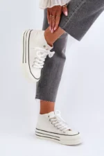Moteriški sportbačiai pagaminti iš tekstilinės medžiagos. Tvirta gumos platforma suteikia jiems madingą išvaizdą ir užtikrina stabilumą vaikštant. Apvalūs priekiai ir klasikinis suvarstymas daro juos universaliu aksesuaru daugeliui laisvalaikio stilių. Nesvarbu, ar einate pasivaikščioti po miestą, ar susitikti su draugais, šie sportbačiai bus puikus pasirinkimas. Rinkdamiesi dydį, prašome atsižvelgti į dydžių lentelę.