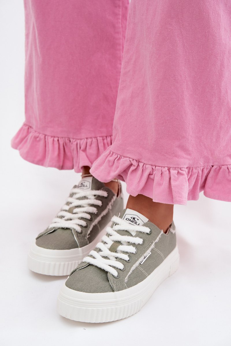O'NEILL moteriški sportiniai bateliai derina kasdienį stilių su madingu akcentu. Pagaminti iš tekstilės medžiagos, jie yra lengvi ir kvėpuojantys, todėl puikiai tinka šiltesnėms dienoms. Žemas kirpimas suteikia jiems universalumo, o pakelta platforma subtiliai lieknina siluetą ir prideda modernumo. Klasikinis raištelis leidžia gerai prigludti prie kojos, užtikrinant komfortą kasdieniniam nešiojimui. Puikiai tinkantys prie džinsų, šortų ar vasarinių suknelių, šie stilingi sportiniai bateliai pagyvins jūsų miesto stilių.