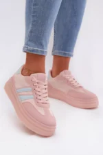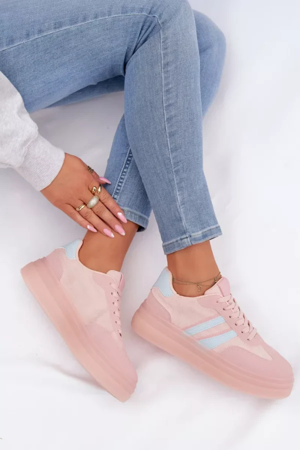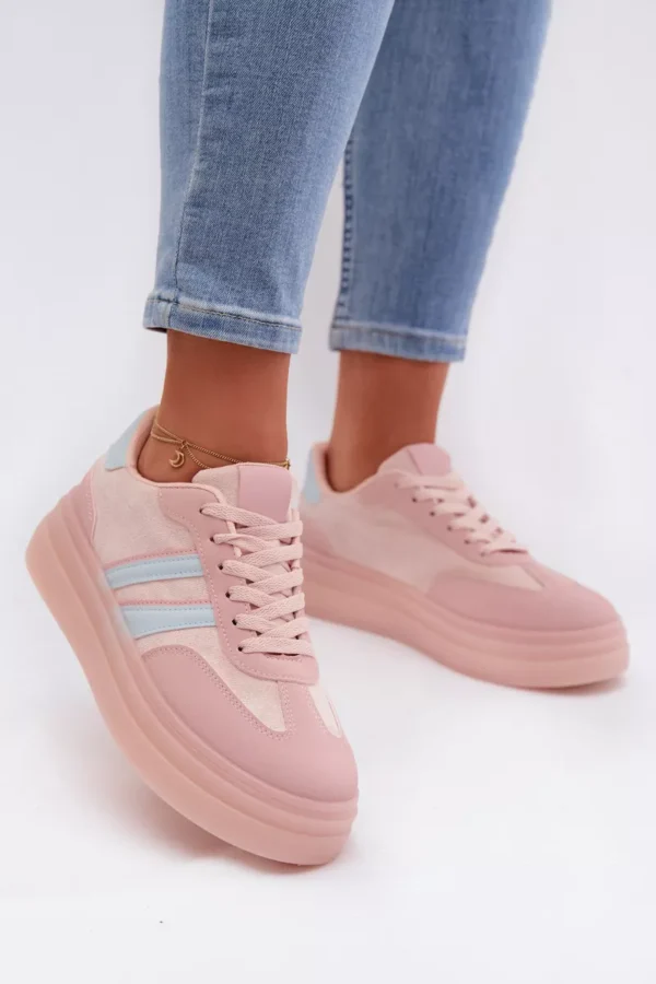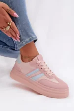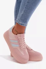 Stilingi moteriški sportiniai bateliai, pagaminti iš ekologiškos odos, yra patogus pasirinkimas kasdieniam nešiojimui. Platforma subtiliai pabrėžia siluetą ir užtikrina stabilumą einant. Dvi juostelės šone suteikia jiems sportišką, modernų išvaizdą. Minkšta putų vidpadžiai garantuoja komfortą visą dieną, todėl šie sportiniai bateliai puikiai tinka kasdieniam nešiojimui. Renkantis dydį, prašome remtis dydžių lentele.