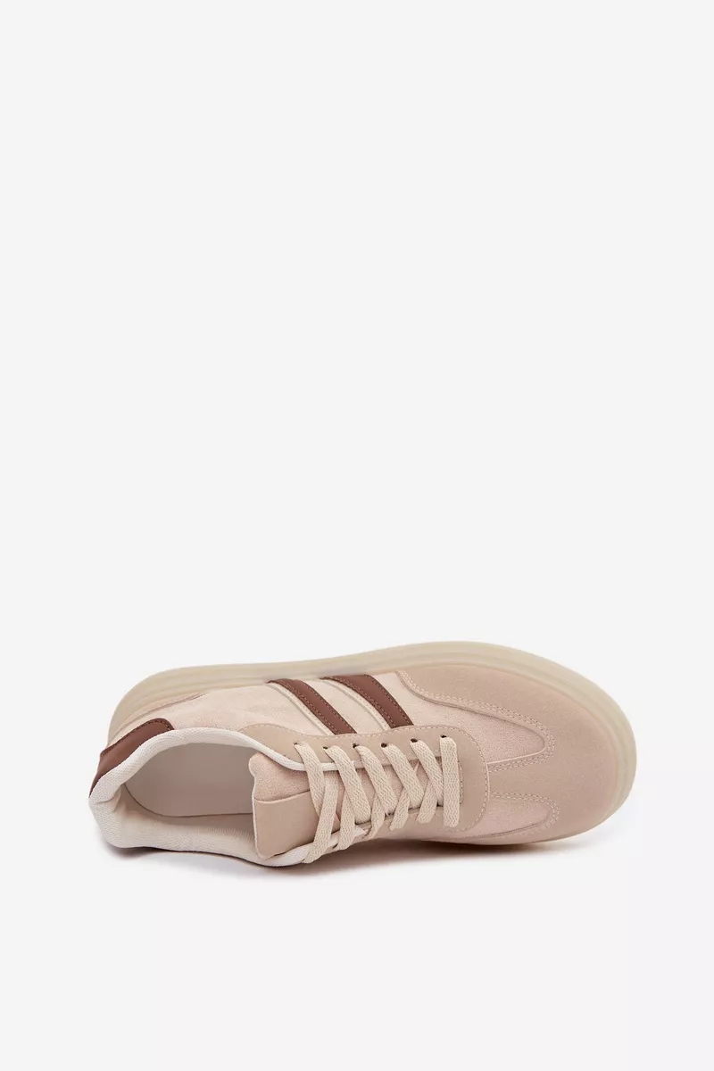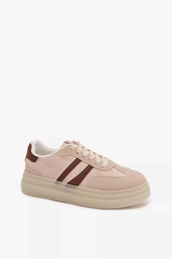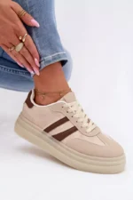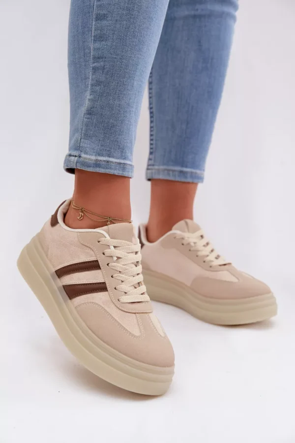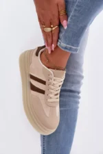 Stilingi moteriški sportiniai bateliai, pagaminti iš ekologiškos odos, yra patogus pasirinkimas kasdieniam nešiojimui. Platforma subtiliai pabrėžia siluetą ir užtikrina stabilumą einant. Dvi juostelės šone suteikia jiems sportišką, modernų išvaizdą. Minkšta putų vidpadžiai garantuoja komfortą visą dieną, todėl šie sportiniai bateliai puikiai tinka kasdieniam nešiojimui. Renkantis dydį, prašome remtis dydžių lentele.