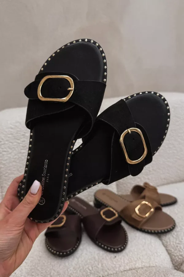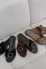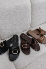 Stilingos moteriškos sandalės su plokščiu kulnu – patogus ir elegantiškas pasirinkimas šiltoms dienoms. Ekologiškos odos dirželis, papuoštas aukso spalvos sagtimi, suteikia bateliams prašmatnumo ir yra akį traukiantis akcentas. Dėl paprasto dizaino šie sandalai puikiai tinka tiek kasdieniam, tiek elegantiškesniam vasaros aprangos ansambliui. Renkantis dydį, prašome remtis dydžių lentele.