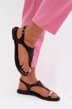 Moteriški ekologiškos odos sandalai – stilingas ir patogus pasirinkimas vasaros dienoms. Plokščias kulnas užtikrina komfortą kasdieniniam nešiojimui, o aukso detalė ant piršto suteikia subtilų, elegantišką akcentą. Reguliuojamas dirželis su sagtimi leidžia sandalus puikiai pritaikyti prie kojų. Šis modelis puikiai tinka tiek kasdieniniams, tiek elegantiškesniems vasaros aprangos deriniams. Renkantis dydį, prašome remtis dydžių lentele.