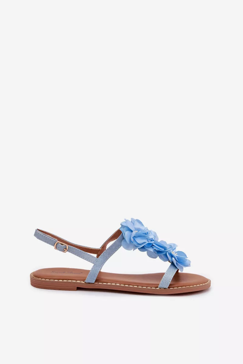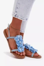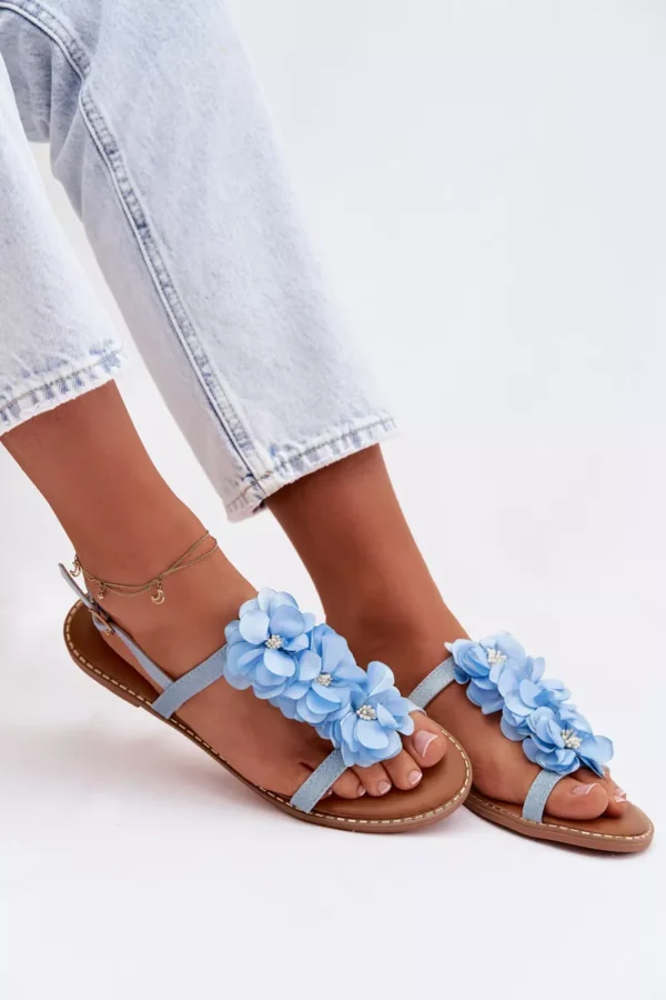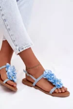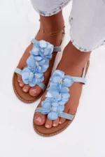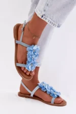 Eleganti ir žavios, *Damski Sandaliai Plokšti Sini Nežni Gėlės Noemia* yra puikus pasirinkimas vasaros sezonui. Sukurti iš ekologiškos odos, šie sandaliai išsiskiria žavingu žiedų motyvu ir subtilia apdaila, kuri suteikia elegancijos. Reguliuojamas dirželis užtikrina puikų pritaikymą ir patogumą dėvint įvairiom progom.