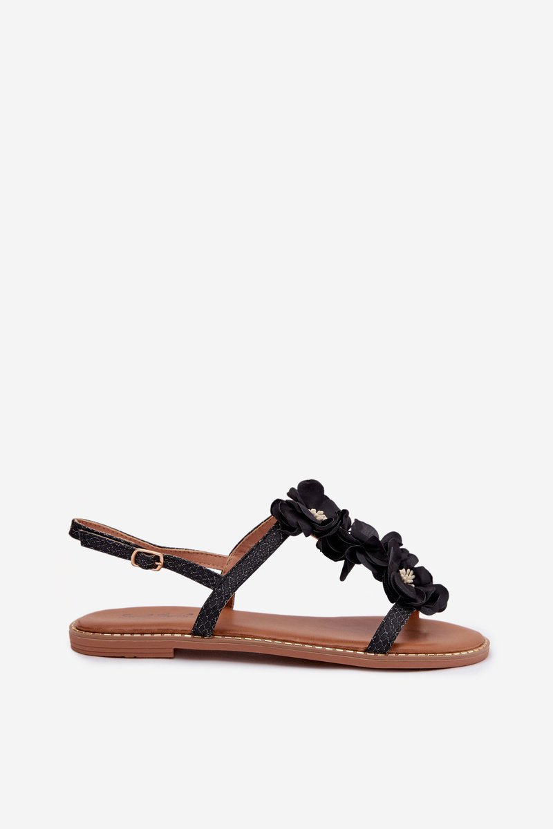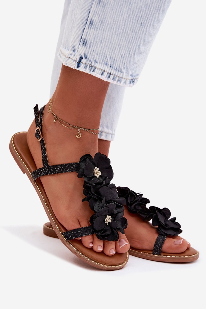 Šios stilingos moteriškos ekologiškos odos sandalės išsiskiria elegantiška apdaila, puošta blizgiais siūlais, kurie suteikia joms subtilų blizgesį. Reguliuojamas dirželis su sagtimi leidžia puikiai pritaikyti batelius. Didžiausias šio modelio privalumas – akį traukiančios audinio gėlės, kurios yra dekoratyvus akcentas, pabrėžiantis moterišką batelių charakterį. Minkšta vidpadžiai užtikrina komfortą visą dieną, todėl šie sandalai puikiai tinka vasaros aprangai. Renkantis dydį, prašome remtis dydžių lentele.