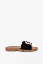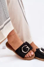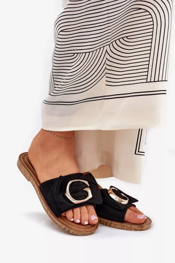 Plokščios moteriškos šlepetės iš eko zomšos, derinantis komfortą su subtiliu stiliumi. Priekyje puošia auksinė detalė, suteikianti joms elegancijos ir išskirtinumo. Idealiai tinka šiltoms dienoms, šios šlepetės puikiai dera su vasarinėmis suknelėmis, sijonais ar kelnėmis, suteikdamos kiekvienai stilizacijai lengvumo. Renkantis dydį, prašome vadovautis dydžių lentele.