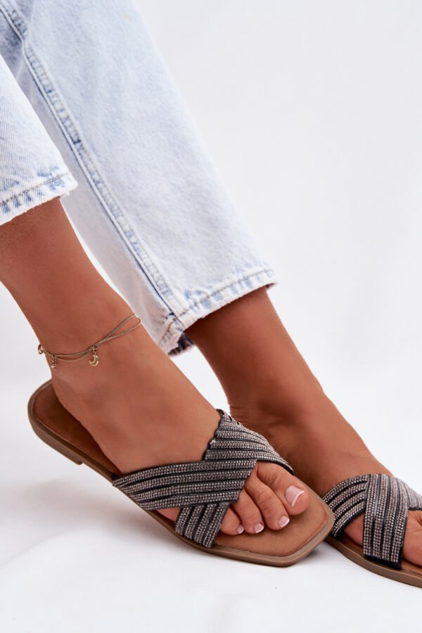 Moteriški plokščiapadžiai kristaliniai juodi šlepetės „Zinnia“