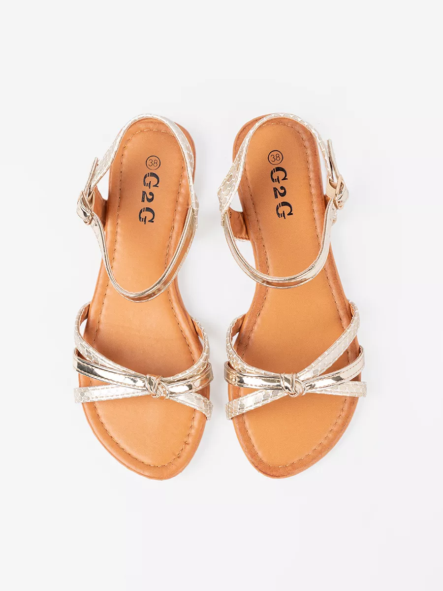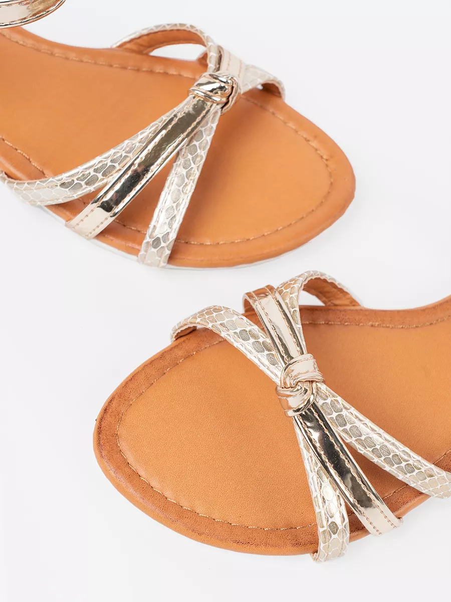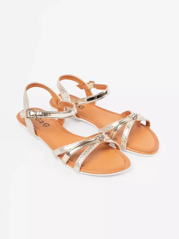 Auksinės plokščiosios sandaloi yra lengvos, todėl užtikrina sušvelnintą žingsnį. Plokščias padas ir reguliuojami dirželiai suteikia maksimalų komfortą, leidžiantį jų savininkei mėgautis kiekvienu žingsniu bet kokiomis sąlygomis. Tinkamai pritaikyta auksinė spalva sukuria žavingą kontrastą su daugybe aprangos atspalvių.