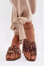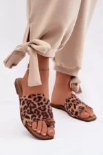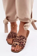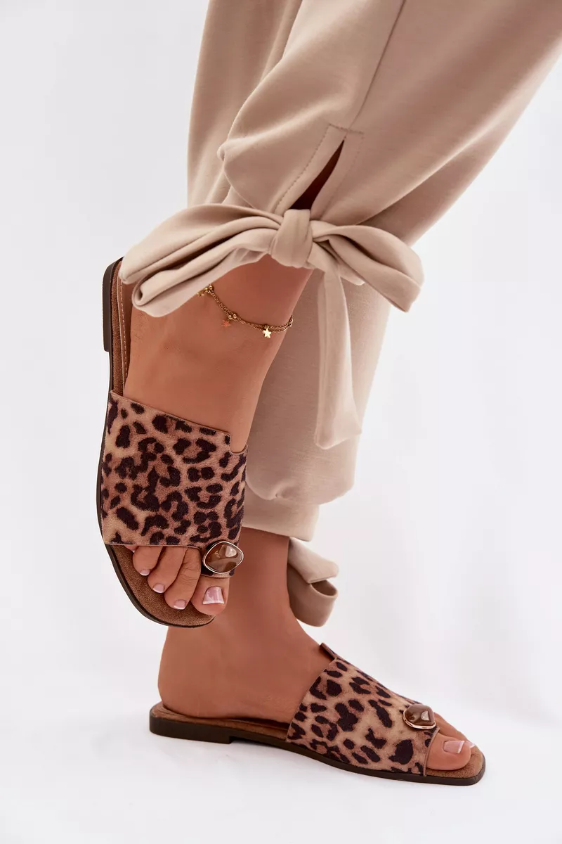 Moteriški plokšti ekologiški suede leopardo rašto papuošti detalės šlepetės Selavine