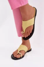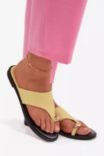 Šios damų basutės yra puikus pasirinkimas vasaros dienoms. Jos pagamintos iš ekologiško odos, todėl ne tik puošia, bet ir yra draugiškos aplinkai. Plokščias padas suteikia patogumo kasdieniam nešiojimui, o auksinės detalės ant pirštų prideda subtilaus, elegantiško akcento. Paprastas ir modernus dizainas puikiai dera su įvairiais vasaros stiliais.