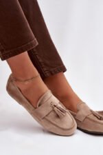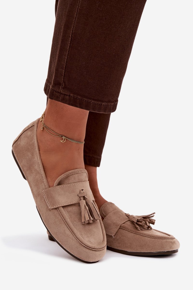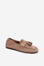 Moteriški plokšti loferiai su kutais, smėlio spalvos „Marilisse“