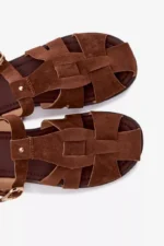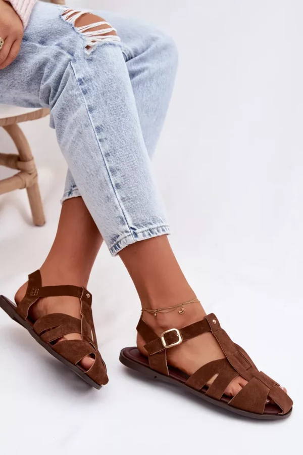 “Belanessa” moteriškos sandalai plokšte romėniško stiliaus yra elegantiška vasaros avalynė, leidžianti jaustis patogiai ir stilingai karštomis dienomis. Šios rudos sandalai pagamintos iš ekologiškos zomšos, suteikiant natūralų pojūtį ir ilgaamžiškumą. Aukso spalvos sagtis leidžia reguliuoti dirželius, kad jie puikiai atitiktų jūsų kojos formą, užtikrinant komfortą ir saugumą kiekviename žingsnyje.