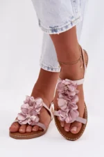 Sandalai pagaminti iš aukštos kokybės ekologiškos odos, kuri užtikrina ilgaamžiškumą ir komfortą. Dekoratyviniai gėlių akcentai suteikia prabangos ir subtilumo. Minkštas padas suteikia nepakartojamą komfortą vaikščiojant, o elegantiškas dizainas tobulai dera prie įvairių stiliaus derinių.