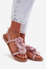 Moteriški plokšti sandalai su dekoratyviniais gėlių motyvais, violetiniai „Noemia“