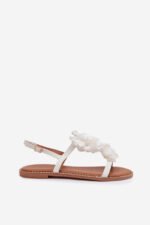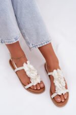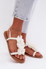 Moteriški plokšti sandalai su dekoratyviniais gėlių motyvais, balti „Noemia“