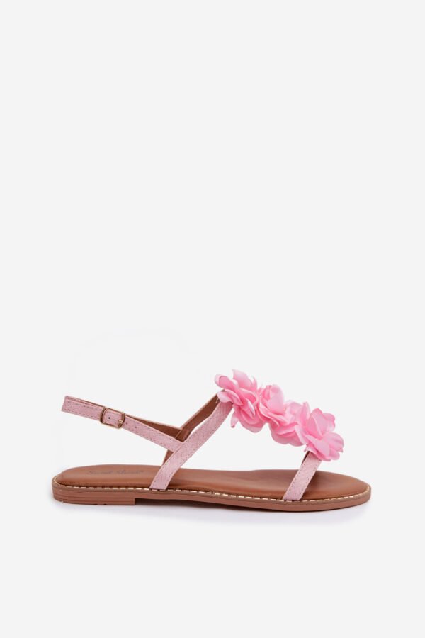 Moteriški plokšti rožiniai sandalai su dekoratyviniais gėlių motyvais Noemia