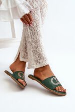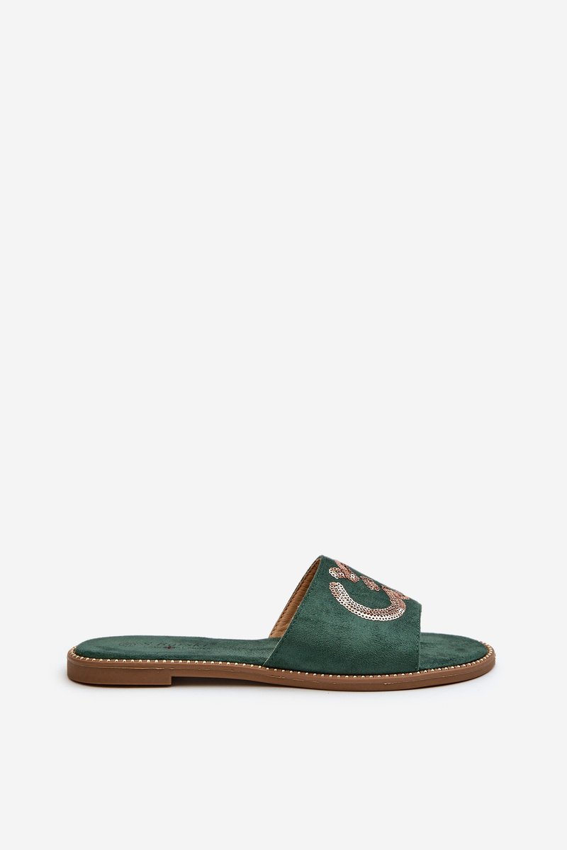 Moteriškos šlepetės pagamintos iš eko zomšo. Įtaisytos ant plokščio kulno. Dekoratyviniai blizgučiai ant dirželio suteikia žavesio. Minkštas „Comfort“ vidpadis leis patogiai avėti avalynę net visą dieną. Puikiai tinka atsitiktinėms (casual) stilizacijoms! Pasirinkdami dydį, prašome vadovautis dydžių lentele.