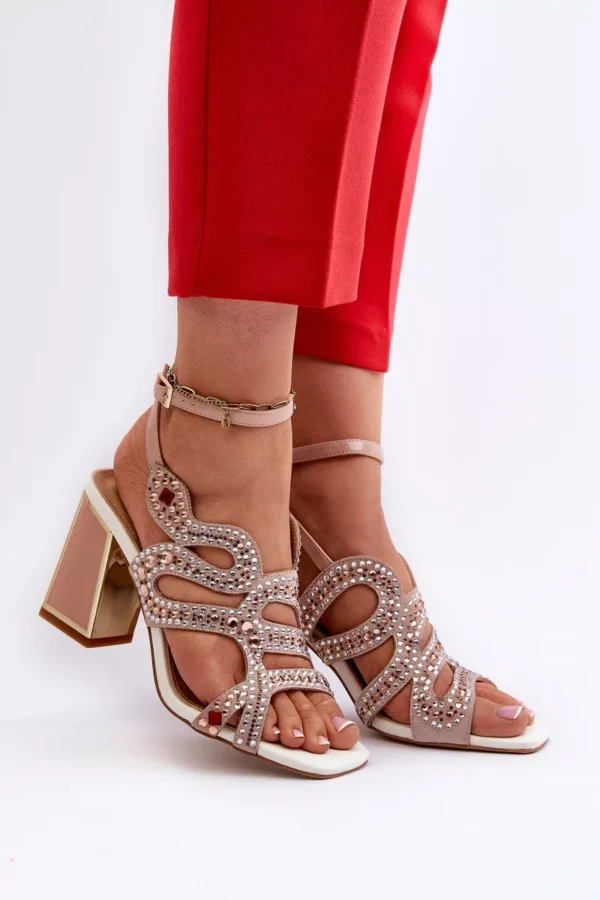 Rožinės aukštakulniai sandalai su papuošimais