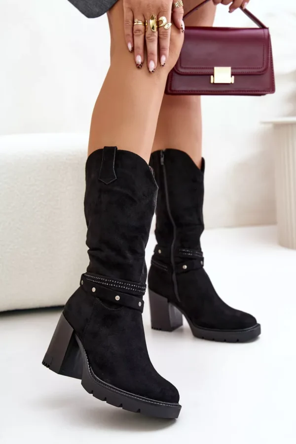 Mielosios moteriškos aulinukai iš Jezzi prekės ženklo. Pagaminti iš minkšto eko zomšo. Įmontuoti ant stabilaus blokelio formos kulno, jie užtikrina patogumą visą dieną. Modelis užsegamas užtrauktuku. Vidus apšildytas avalynės antklode. Ant aulo puikuojasi du persipynę dirželiai. Rinkdamiesi dydį, prašome vadovautis dydžių lentele.