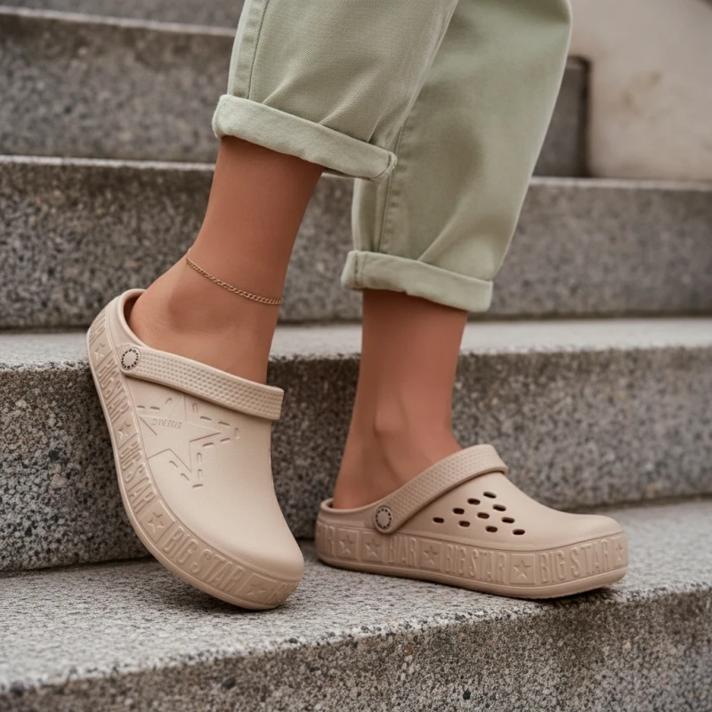 „Big Star“ moteriški klumpės, pagamintos iš putų medžiagos, yra puikus pasirinkimas šiltoms dienoms. Lanksti, minkšta medžiaga užtikrina komfortą ir lengvą valymą – jos idealiai tinka ten, kur svarbi judėjimo laisvė.