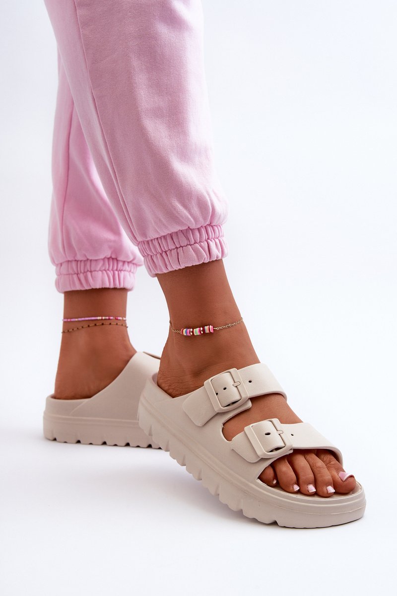 Šios bežinės šliūbės yra pagamintos iš kokybiškos dirbtinės odos ir turi storą pliušinę platformą, kuri užtikrina ne tik patogų dėvėjimą visą dieną, bet ir lengvą amortizaciją. Patogios dvigubos reguliavimo juostos leidžia tobulai pritaikyti stilių jūsų pėdai, suteikiant papildomą komfortą ir palaikymą.