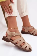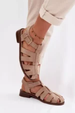Būkite pirmas aprašęs “Moteriški romėniški sandalai su aukso sagtimi, smėlio spalvos „Janessa“”