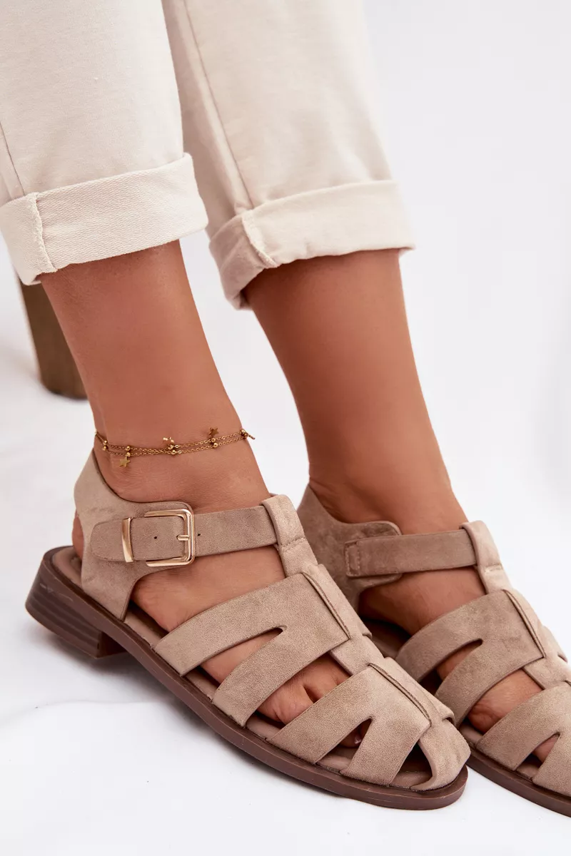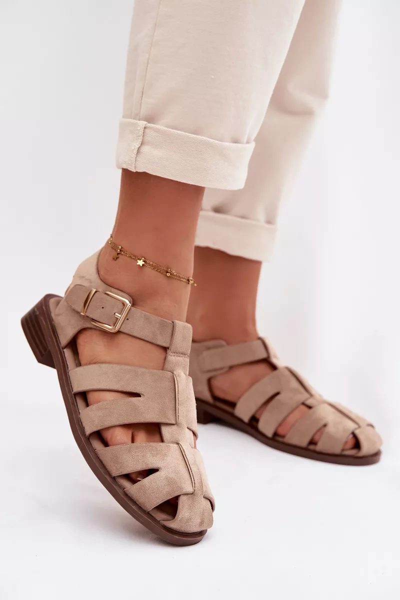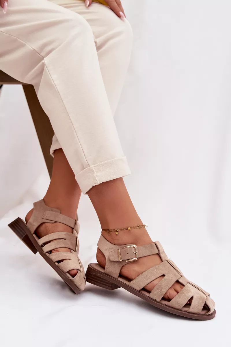 Moteriški romėniški sandalai su aukso sagtimi, smėlio spalvos „Janessa“