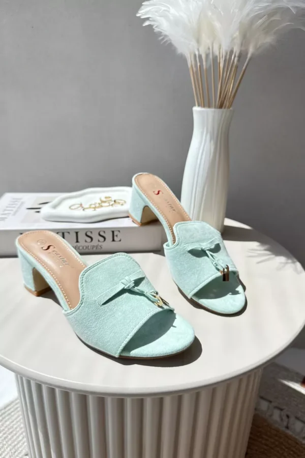 Patraukliosios damės vasaros sandalai, pagaminti iš minkšto mėtų ekologiško velveto, yra puikus pasirinkimas, siekiantiems elegantiško ir patogaus stiliaus. Šios sandalai ne tik puikiai atrodys kasdien, bet ir papildys bet kokią šventinę aprangą lengvu prašmatnumu. Dėvint šiuos sandalus siluetas taps lengvas, o jausitės itin komfortiškai visą dieną.