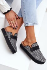 Moteriškos šlepetės iš ekologinio zomšado. Montuojamos ant platformos. Šis modelis išsiskiria daugybe cirkonių, kurie suteikia blizgesio bet kokiai progai. Užapvalinti, uždari noselės. Šiek tiek profiliuotas vidpadis užtikrins patogumą. Stilingas dizainas, kuris tikrai papildys daugelį vasaros stilių! Pasirinkdami dydį, vadovaukitės dydžių lentele.