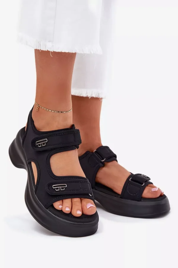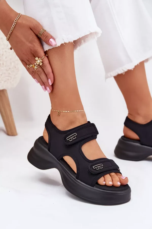 Madingi ir patogūs damų sandalai su aukso detalėmis juodos spalvos sukurti siekiant užtikrinti maksimalų komfortą ir elegantišką išvaizdą. Pagaminti iš aukštos kokybės tekstilinio audinio, šie sandalai puikiai tiks šiltoms vasaros dienoms. Komfortiška platforma ir minkštas padas leidžia jaustis patogiai visą dieną.