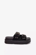 Moteriškos platformos šlepetės yra stilingas pasiūlymas šiltoms dienoms. Šis modelis išsiskiria reguliuojamais dirželiais su auksinėmis sagtimis, kurios užtikrina idealų prigludimą prie pėdos. Puikios vasaros stiliams, jos derina komfortą su elegantiška išvaizda, suteikdamos kiekvienam ansambliui madingą charakterį. Renkatės dydį, prašome vadovautis dydžių lentele.