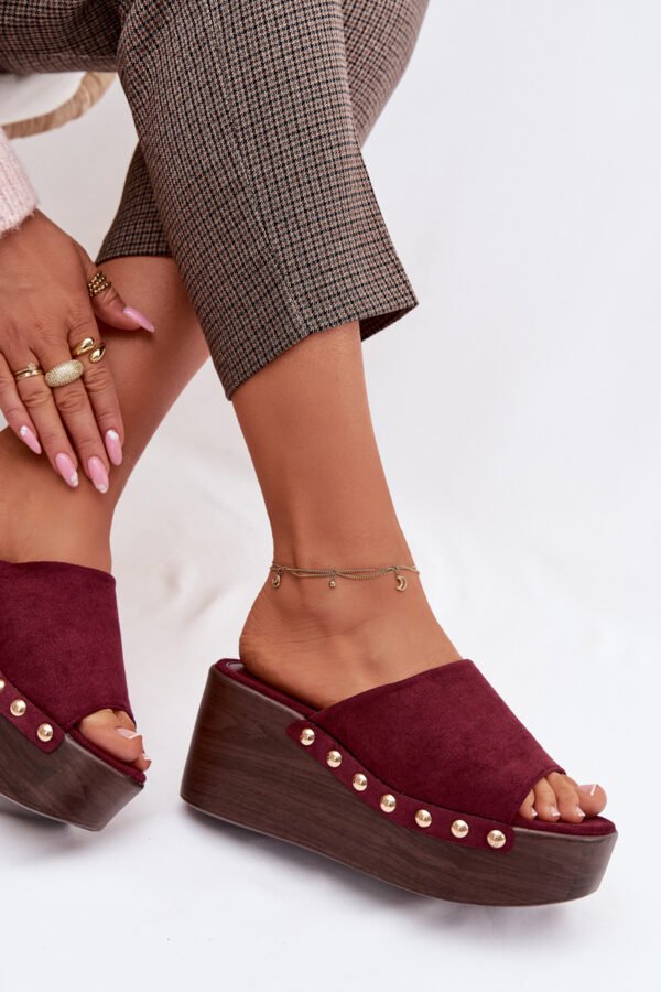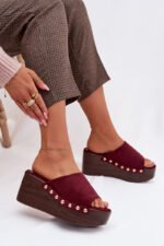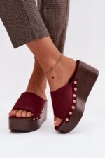 Moteriški ekologiški suede šlepetės yra stilingas pasirinkimas kasdieniam nešiojimui. Kulninis padas kartu su platforma užtikrina stabilumą ir komfortą, tuo pačiu subtiliai pabrėždamas figūrą. Auksinės kniedės šonuose suteikia madingą akcentą. Šis modelis puikiai tinka vasaros aprangai – su suknelėmis, kelnėmis ar sijonais. Tai idealus pasirinkimas moterims, kurios vertina komfortą ir išskirtines, stilingas detales. Renkantis dydį, prašome remtis dydžių lentele.