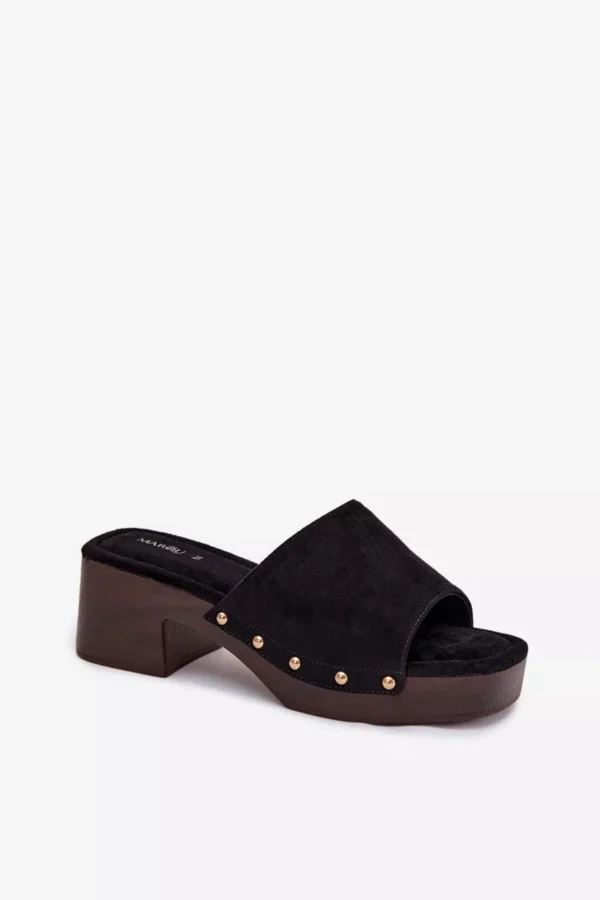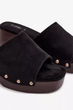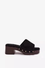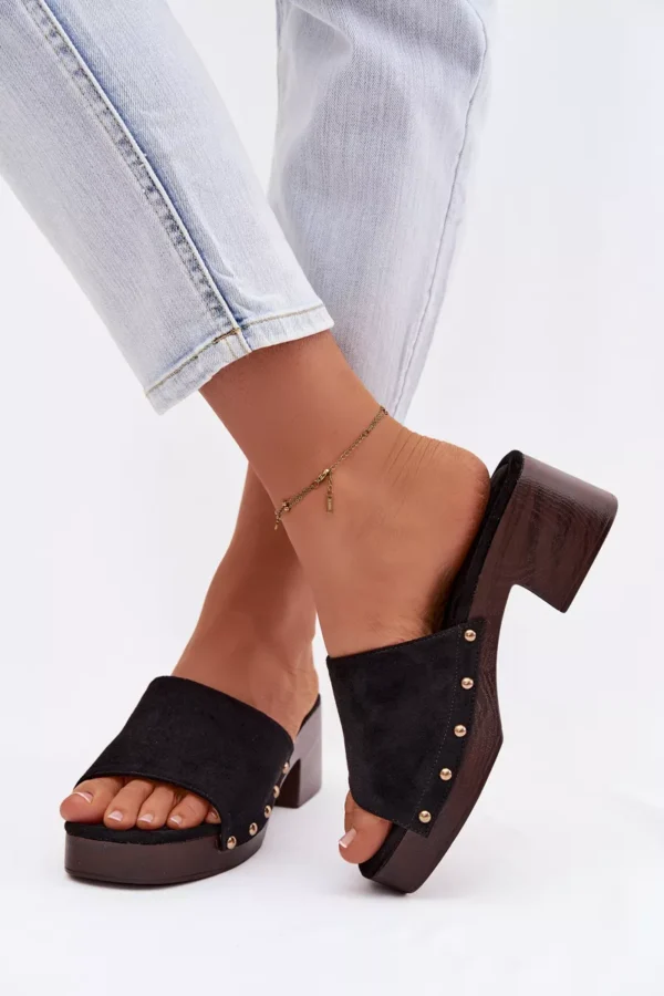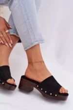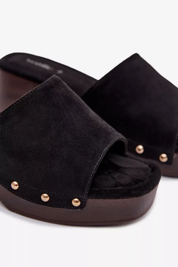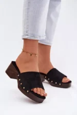 Moteriški ekologiški suede šlepetės yra stilingas pasirinkimas moterims, mėgstančioms madingus akcentus. Modelis yra su stabiliu blokiniu kulnu ir platforma, užtikrinančiais komfortą ir pasitikėjimą kiekvienu žingsniu. Minkšta vidpadžiai užtikrina komfortą, o auksiniai kniedės šonuose suteikia visam bateliui išskirtinį charakterį. Šie basutės puikiai tinka tiek kasdieniam, tiek stilingesniam vasaros aprangos stiliui. Renkantis dydį, prašome remtis dydžių lentele.