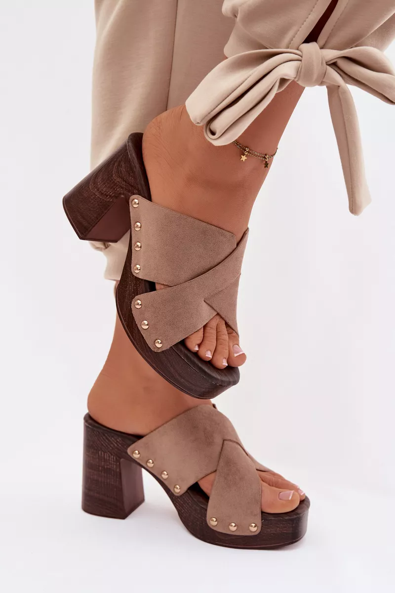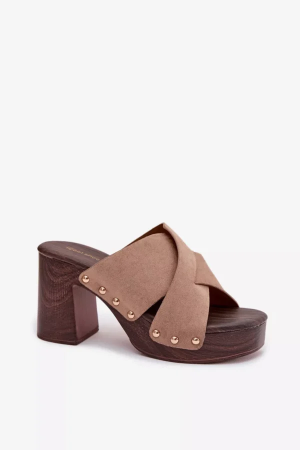 Moteriški sandalai su blokiniu kulnu ir auksiniais sagtimis, tamsiai smėlio spalvos „Nerelle“