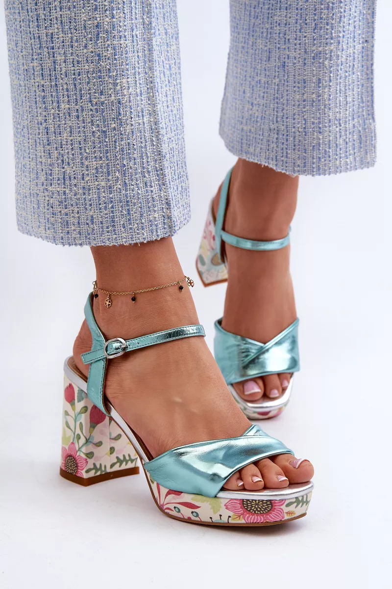 Stilingi moteriški sandalai su gėlių raštu