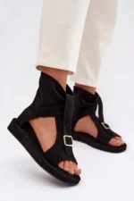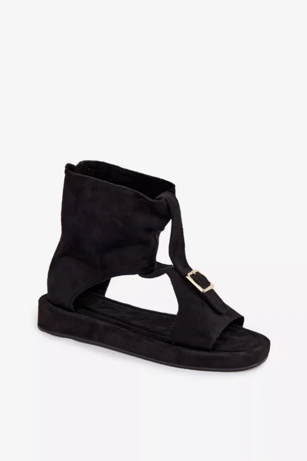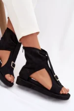 Ekologiškos odos sandalai yra stilingas pasirinkimas šiltoms dienoms ir ypatingoms progoms. Minkšta medžiaga suteikia jiems subtilų išvaizdą, o užsegamas užtrauktukas gale užtikrina patogumą ir greitą užsidėjimą. Batų priekis papuoštas akį traukiančia juosta su aukso spalvos sagtimi, kuri suteikia išskirtinį šarmo visai išvaizdai. Šis modelis puikiai papildys tiek kasdienius, tiek elegantiškesnius aprangos derinius.