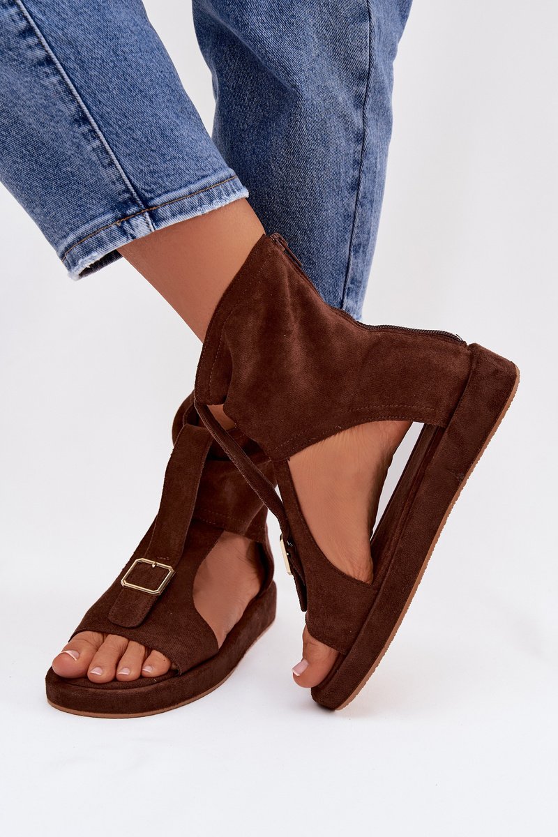 Ekologiškos odos sandalai yra stilingas pasirinkimas šiltoms dienoms ir ypatingoms progoms. Minkšta medžiaga suteikia jiems subtilų išvaizdą, o užsegamas užtrauktukas gale užtikrina patogumą ir greitą užsidėjimą. Batų priekis papuoštas akį traukiančia juosta su aukso spalvos sagtimi, kuri suteikia išskirtinį šarmo visai išvaizdai. Šis modelis puikiai papildys tiek kasdienius, tiek elegantiškesnius aprangos derinius.