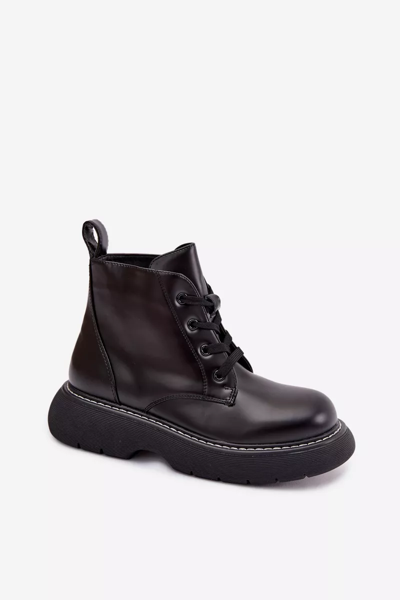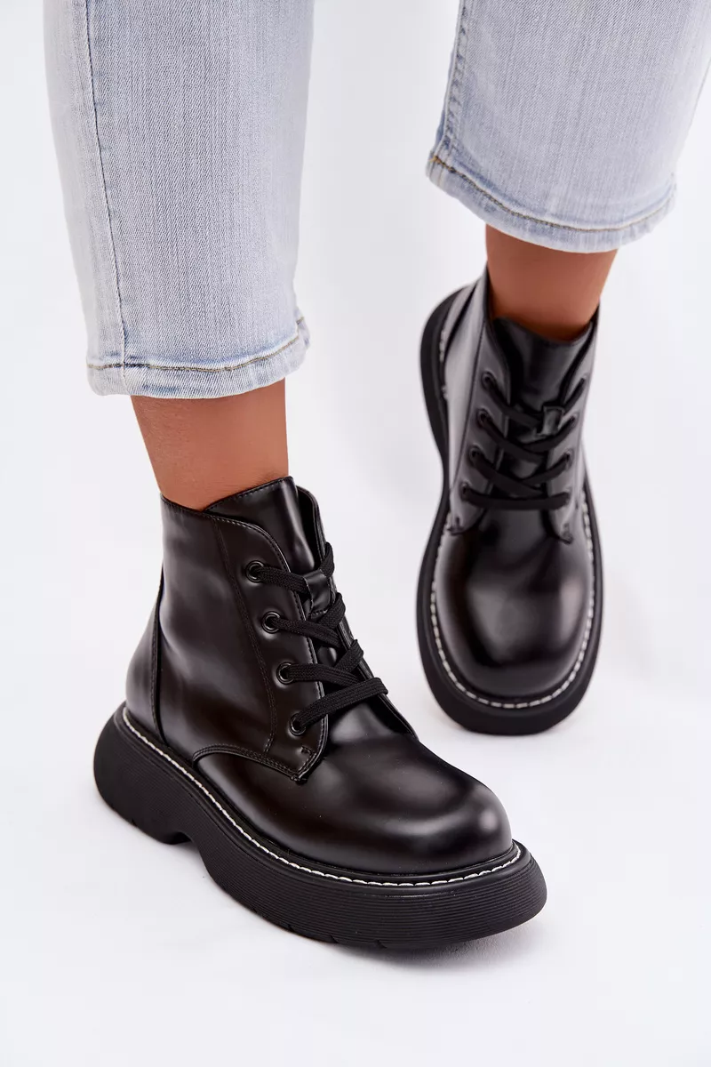 Moteriški šilti platforminiai batai su raišteliais, juodi „Harmine“