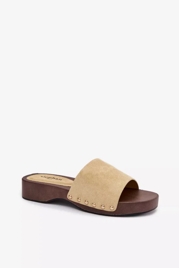 Stilingos moteriškos basutės iš ekologiškos odos yra patogus ir madingas pasirinkimas kasdieniam nešiojimui. Subtilus padėklas užtikrina komfortą ir šiek tiek pakelia siluetą, tuo pačiu garantuodamas stabilumą einant. Auksinės kniedės šonuose suteikia subtilų akcentą. Šis modelis puikiai tinka kasdieniam aprangos deriniui – su džinsais, suknelėmis ar vasariniais komplektais. Tai idealus pasirinkimas moterims, kurios vertina patogumą ir madingas detales. Renkantis dydį, prašome remtis dydžių lentele.