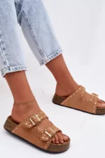 “Camel Tervina” šlepetės išsiskiria auksiniais spaustukais ir sagutėmis, kurios suteikia ne tik stiliaus, bet ir unikalumo. Šie elementai ypač puošia natūralias zomšinės medžiagos šlepetes, todėl jos tampa madingu akcentu jūsų garderobui.