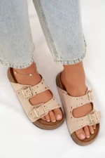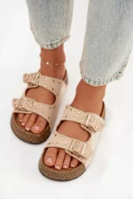 Jasnobeżowe Tervina sandalai yra ne tik madingi, bet ir patogūs vaikščioti visą dieną. Lankstus padas suteikia komforto ir ilgalaikį naudojimą, o patvari medžiaga užtikrina, kad jūsų sandalai tarnautų ne vieną sezoną. Auksiniai akcentai traukia akis ir linksmina, todėl šie sandalai – puikus pasirinkimas mėgstančioms stilingumą ir komfortą.