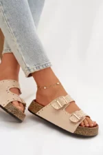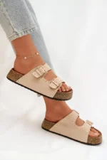 Stilingi ir komfortiški damų sandalai Jasnobeżowe Tervina su auksiniais spaustukais įkvėps jūsų aprangą naujam gyvenimui. Šie sandalai pagaminti iš ekologiškų zomšo medžiagų, kurios užtikrina aukštą kokybę ir patikimumą. Švelni bei natūrali koralų platforma suteikia ne tik komforto, bet ir elegantiškos vasaros jausmą kiekvienam žingsniui. Paauksuoti segtukai ir sagtys neabejotinai padės išsiskirti tarpoje, pridėdami modernumo ir ryškumo kievienai rūbų deriniu ir tikrai nepaliks abejonių jūsų pasirinkimui.