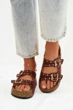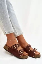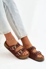 Būkite pirmas aprašęs “Moteriški šlepetės su auksiniais užsegimais ir sagomis, rudos spalvos „Tervina“”
