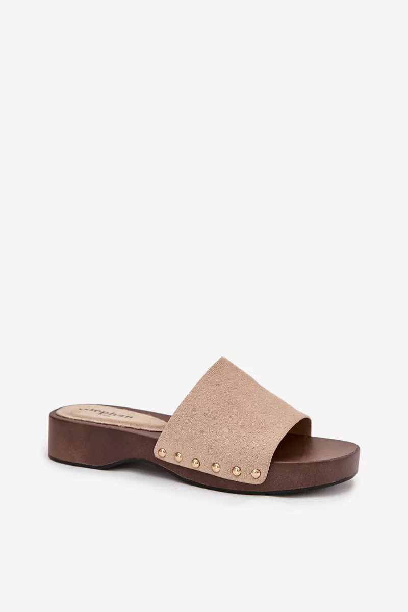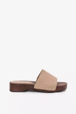 Stilingos moteriškos basutės iš ekologiškos odos yra patogus ir madingas pasirinkimas kasdieniam nešiojimui. Subtilus padėklas užtikrina komfortą ir šiek tiek pakelia siluetą, tuo pačiu garantuodamas stabilumą einant. Auksinės kniedės šonuose suteikia subtilų akcentą. Šis modelis puikiai tinka kasdieniam aprangos deriniui – su džinsais, suknelėmis ar vasariniais komplektais. Tai idealus pasirinkimas moterims, kurios vertina patogumą ir madingas detales. Renkantis dydį, prašome remtis dydžių lentele.