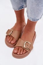Stilingos moteriškos basutės ant subtilios platformos. Dirželis pagamintas iš ekologiškos odos ir papuoštas aukso spalvos sagtimi, suteikiančia visam bateliui elegantišką išvaizdą. Švelniai kontūruota vidpadžiai užtikrina komfortą ir gerą prigludimą. Šis modelis puikiai tinka tiek kasdieniams vasaros aprangos deriniams, tiek elegantiškesniems ansambliams. Renkantis dydį, prašome remtis dydžių lentele.
