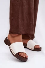 Moteriški platforminiai šlepetės su kniedėmis, šokolado spalvos „Mareline“